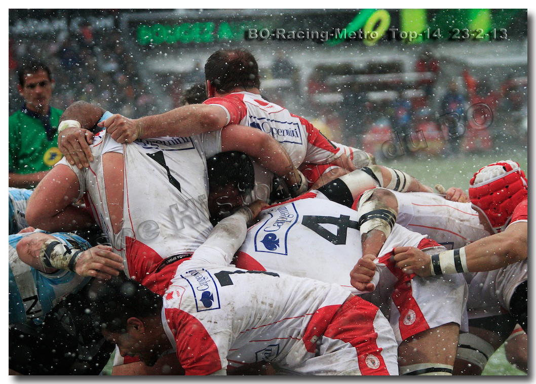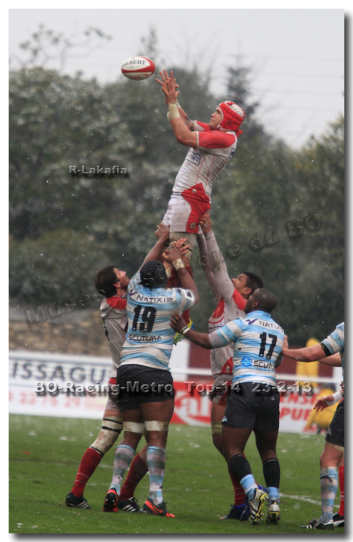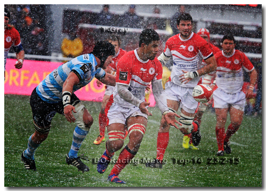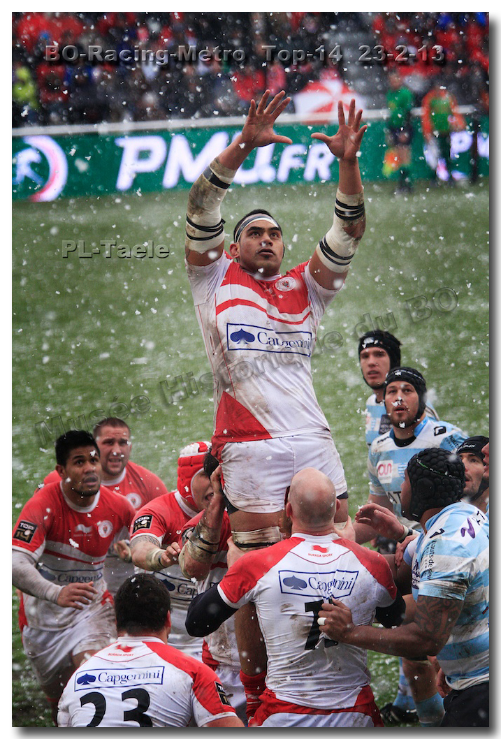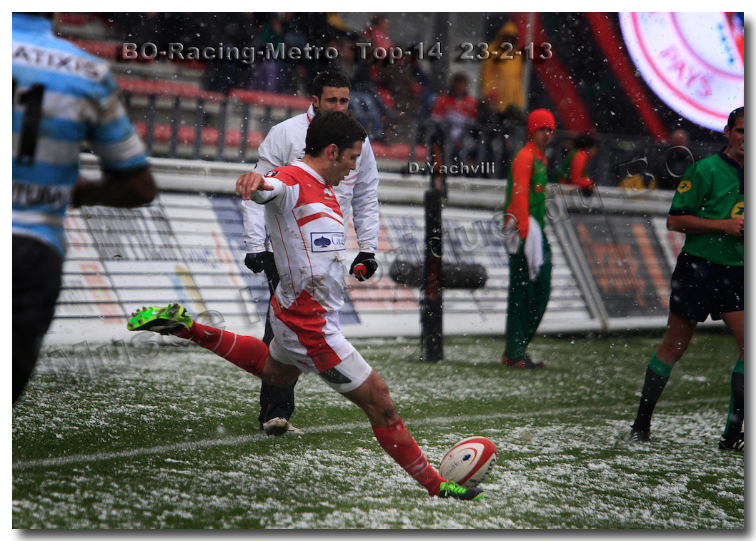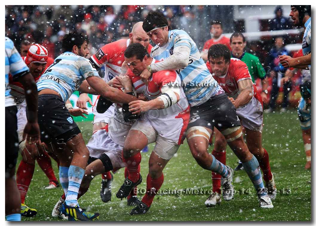 Après un long tunnel de huit matches disputés le soir, souvent le vendredi mais toujours son pluie, le déluge, dans le lac d’Aguilera, chacun se félicitait d’assister à BOPB-Racing-Métro 92 , un samedi après-midi. Décidemment, les dieux de la météo avaient décidé de marquer d’une pierre blanche cette rencontre. En fait de pierre blanche, c’est la neige qui fera son apparition sur la pelouse d’Aguilera. Un beau manteau blanc sous lequel, les derniers espoirs du BOPB de faire partie des six barragistes du Top 14 vont être ensevelis. Que faire devant la domination des Parisiens ? Les Rouge et Blanc vont de toutes leurs forces résister jusqu’à ce que Manuel Carizza, l’ex-biarrot vienne contrer Damien Traille dans les 22m biarrot. Le ballon filant dans l’en-but, Sébastien Descons, le numéro neuf parisien plongea pour aplatir. Arbitrage video ! L’essai était accordé. Y avait-il de la neige sur l’écran de l’arbitre vidéo ? Après le match, Alexandre Ruiz fera son mea culpa, l’essai n’était valable. Revenu à sept points des Racingmen, les Biarrots à nouveau dans le match se trouveront distancés définitivement. Un jour de neige, ça fout les boules….